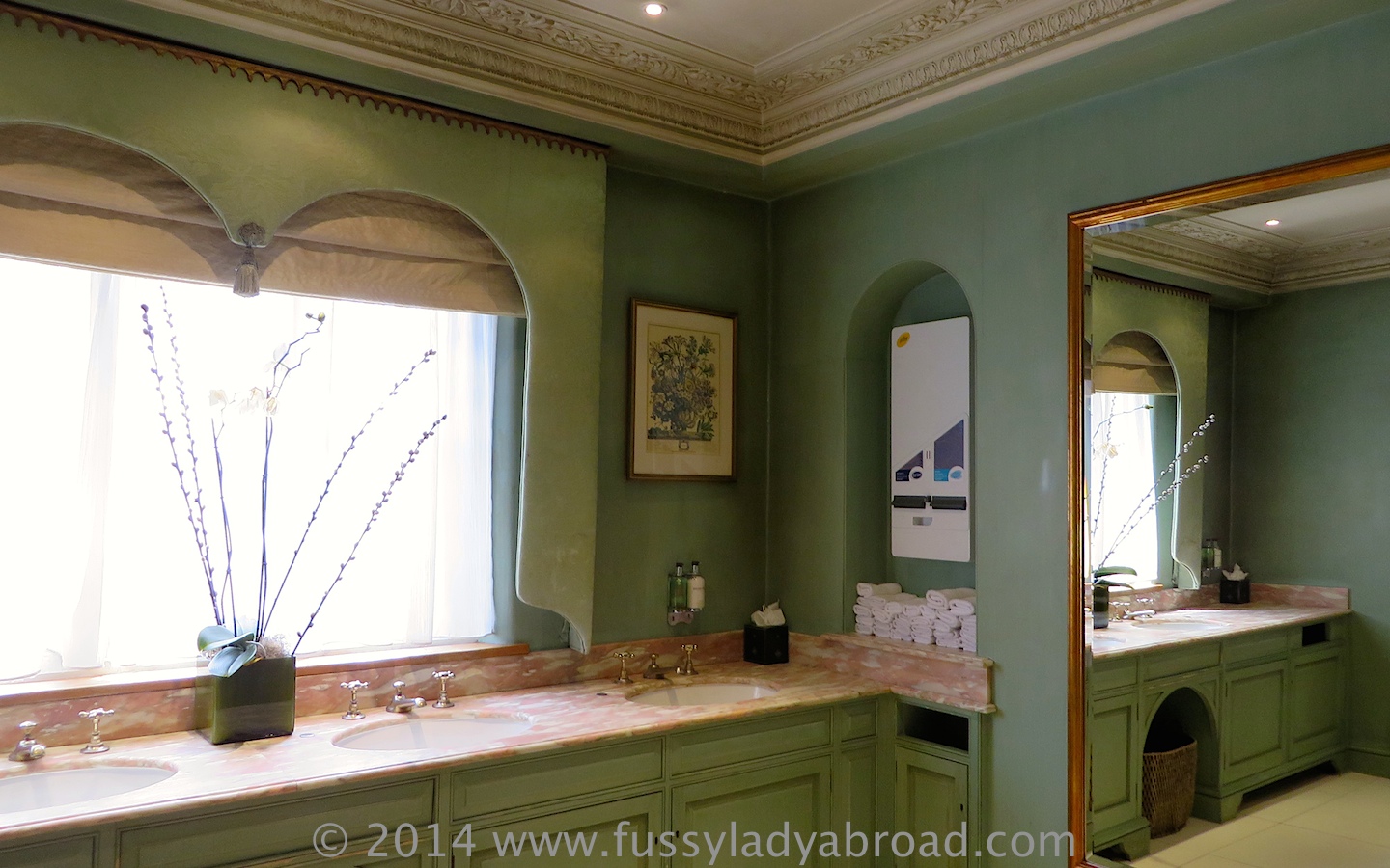 The ladies on the ground floor is decorated in keeping with the rest of the building and the colour is very similar to my bedroom, so I consider it to be restful and elegant. However, behind those duck egg doors, the cubicles are cramped and functional. Soap and handcream are supplied by Crabtree and Evelyn. SurreyDanceLady thought that was OK, but considering that so many things are home-grown and other suppliers are carefully selected, I think soap products from an artisan would add a nice touch. We were happy to see proper hand towels.