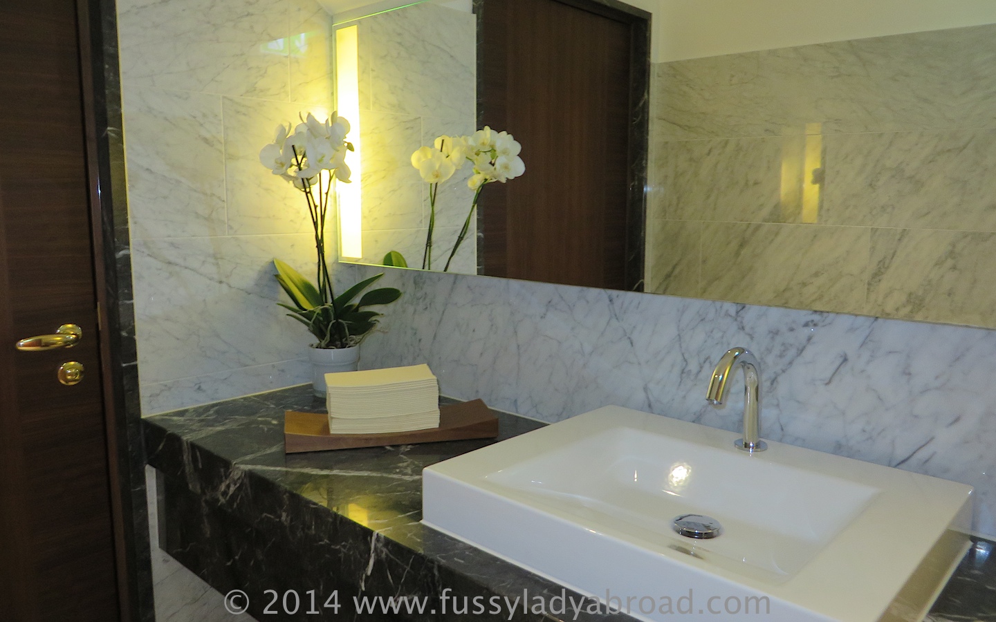 There is just a small ladies room for use by the roof top bar guests. It is clean and functional. The hand towels are a compromise: not paper, not cloth, but that non woven fibre that is most often used as disposable tablecloths. It dries hands, so I suppose that is all that really matters. The soap and hand cream are in glass dispensers, smell nice and leave your hands soft.